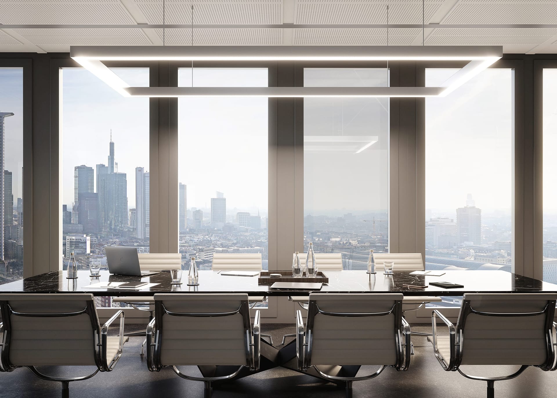 Die neue Büroadresse in der Frankfurter Innenstadt. Fast 10.000 qm Mietfläche, verteilt auf 10 Etagen vom 22. – 31. Geschoss. Mit einer spektakulären Dachterrasse und fantastischer Aussicht auf die Stadt.